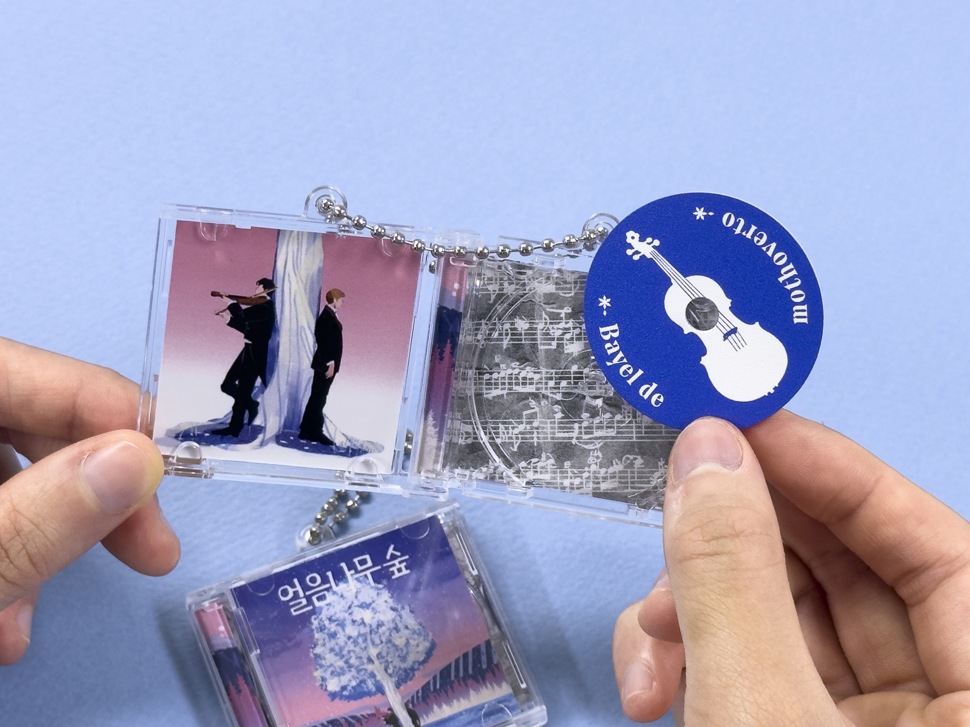 CD 디스크에는 바옐의 수식어인 ‘Bayel de mothoverto’와 함께 그의 악기인 흰색 바이올린을,