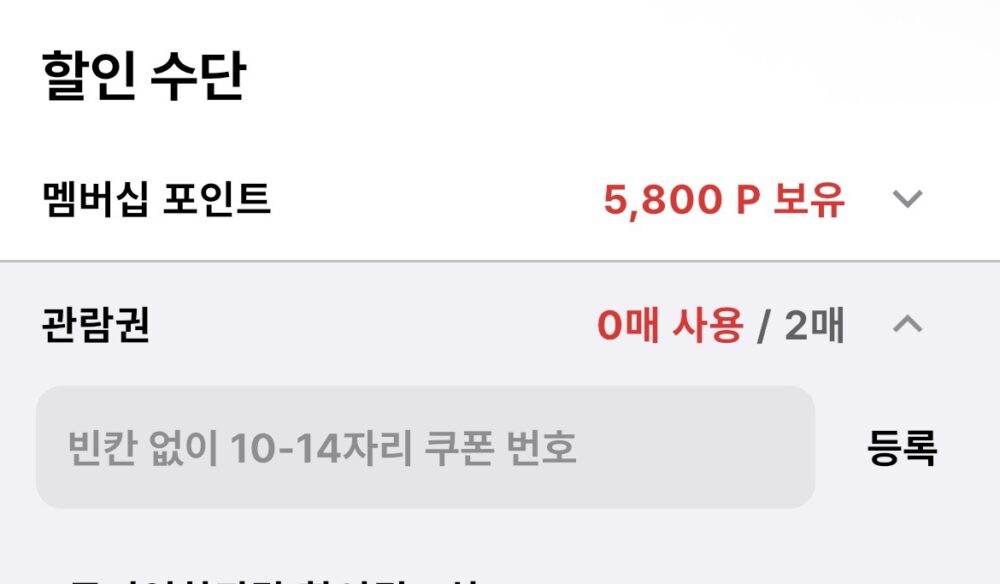 씨네큐 앱에서 관람할 영화 선택 후 결제단계에서 ‘관람권’에 붙여넣기하고 등록한 다음