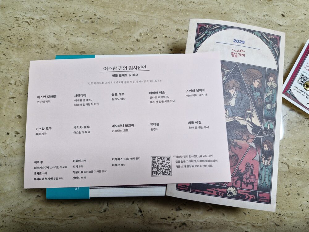 책을 열어보니 인물 관계도와, 브릿G 및 황금가지의 작품을 소개하는 책자가 있네요