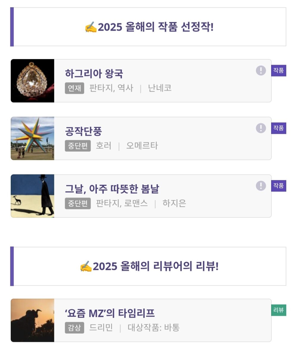 2025 브릿G 올해의 작품&리뷰어 투표 결과 공개!🎉