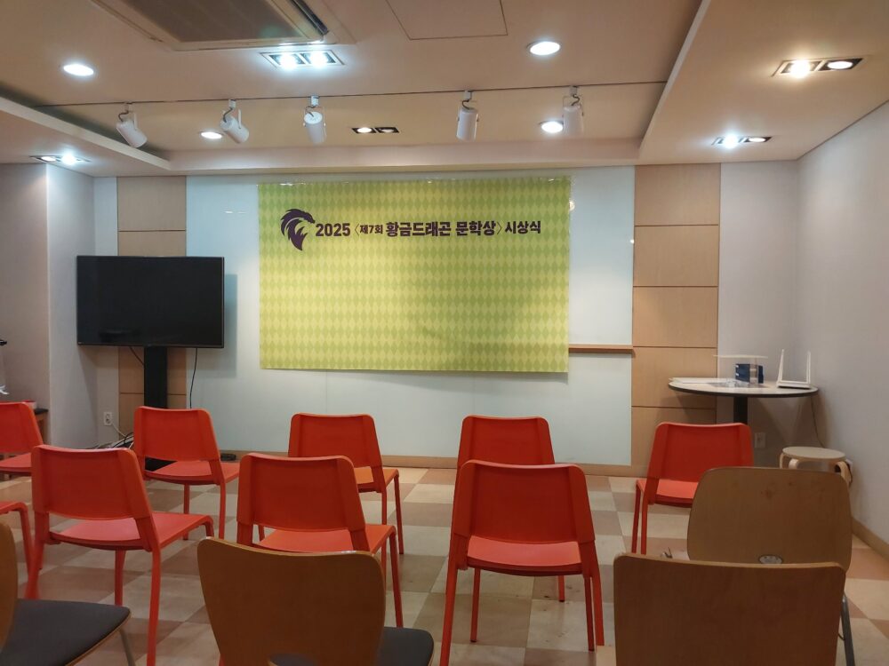 불도 켜고 의자도 펼쳐서 얌전히 앉아 기다렸죠. 너무 일찍 온 탓에 대회의실은 정말로 회의실다운 풍경이었지만, 저는 “아 본심 진출자들을 이렇게 앉혀놓고 중앙에서 사회를 보나?”라고 생각도 했습니다. 진짜로 그랬다면 오늘 진행을 맡으신 사회자(편집자)께선 분명 벌칙게임의 참패로 사회를 맡으신 게 되겠죠…