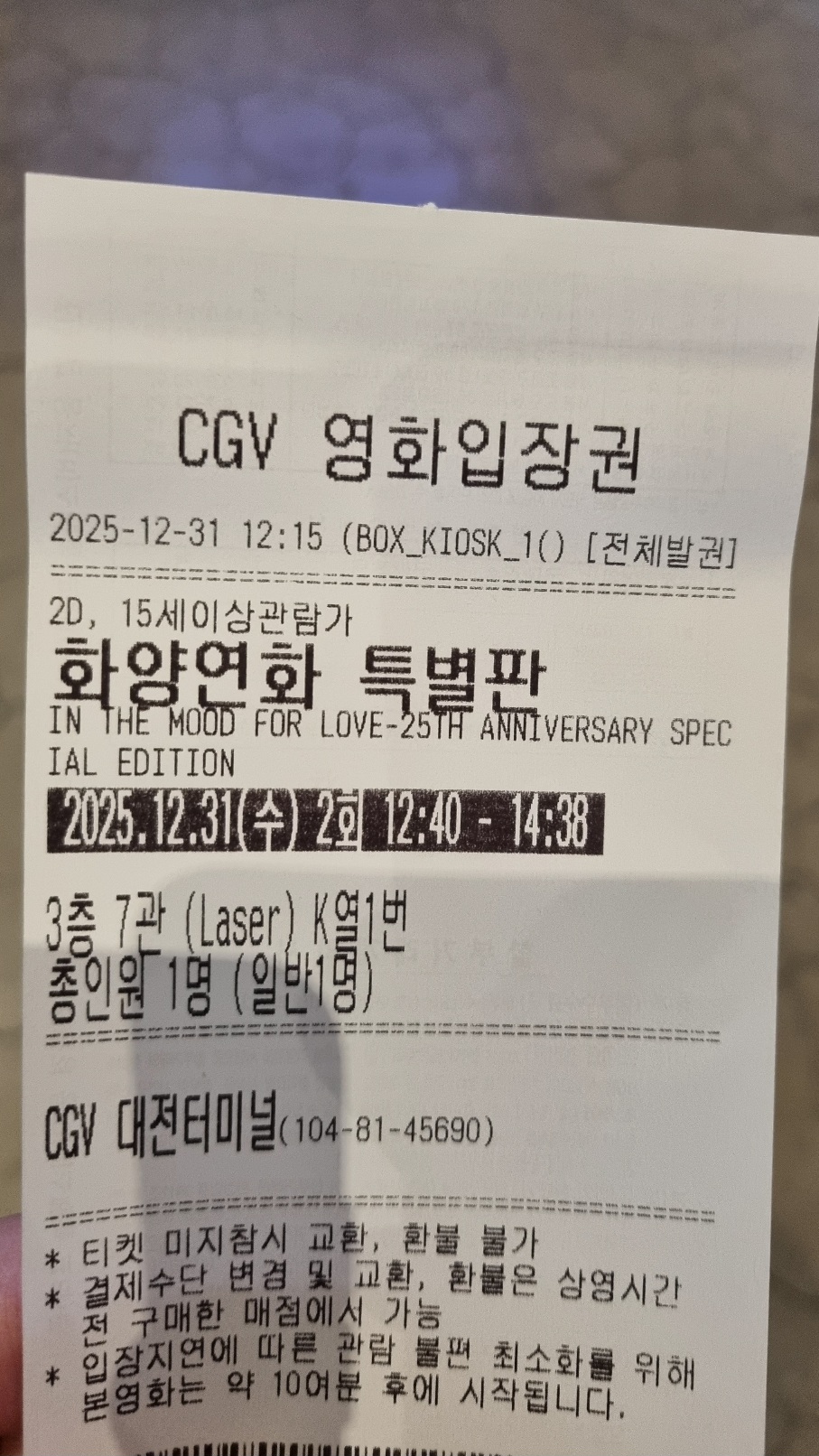 네, 올해 마지막 영화로 화양연화 특별판을 보고 왔습니다.