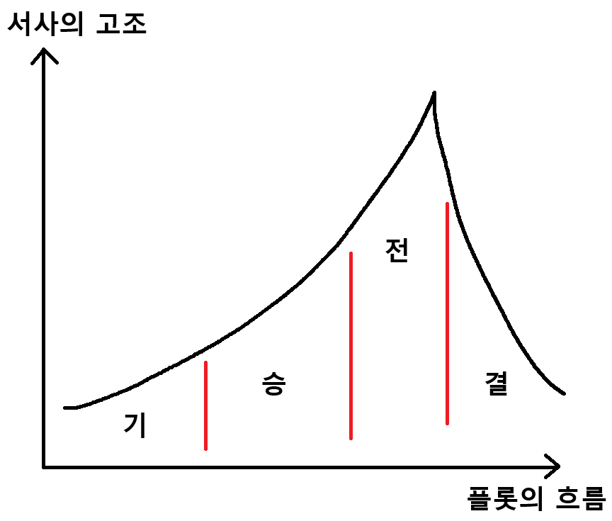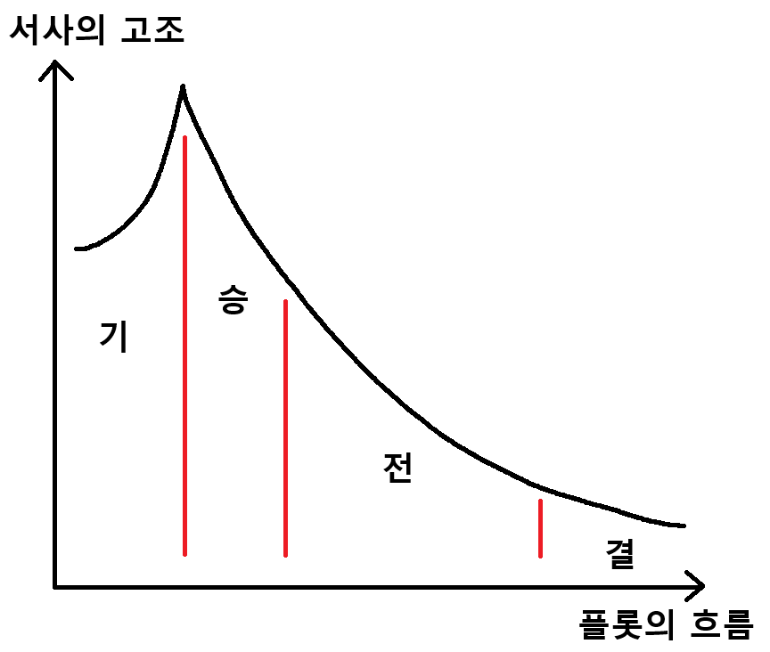 이를 기승전결에 도식적으로 대입하면 이렇게 볼 수 있다.