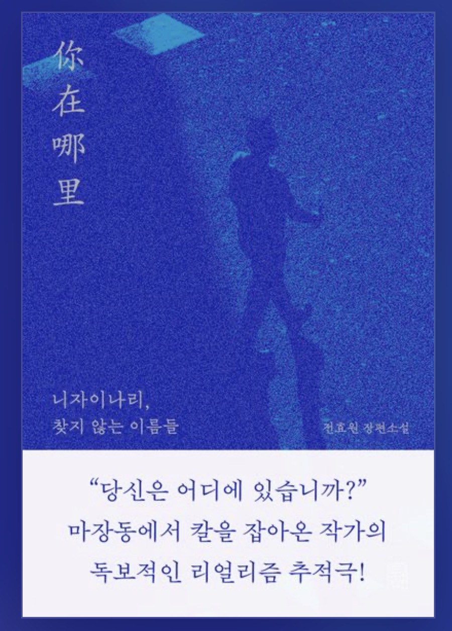 『니자이나리, 찾지 않는 이름들』이라는 제목인데요. ‘니자이나리(你在哪里)’는 중국어로 ‘당신은 어디에 있습니까?’라는 뜻이에요.