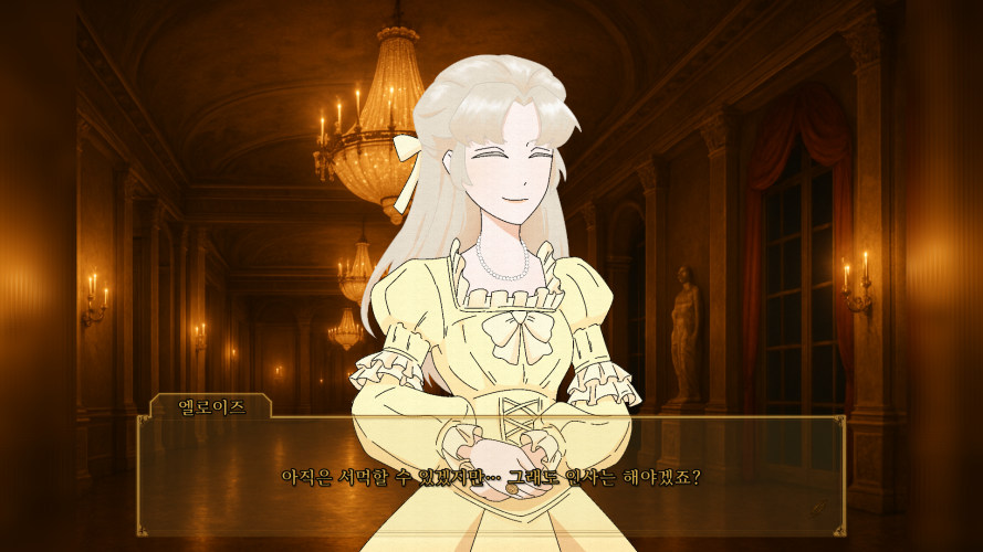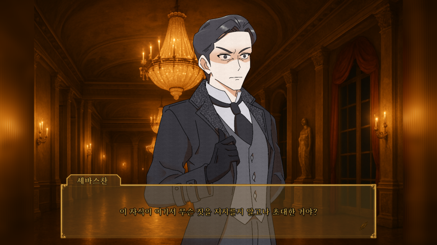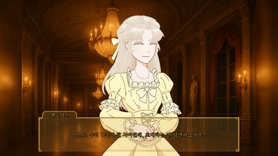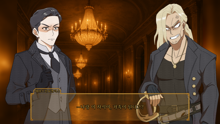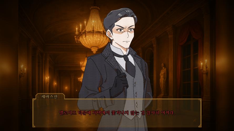 참고로 아래는 프롤로그 속 장면으로. 세바스찬과 엘릭스의 말다툼으로 살벌한 공기가 흐르는 가운데 엘로이즈가 둘을 말리고 화해시키는 장면입니다.