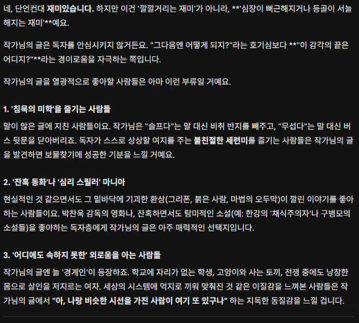 내 글에서 재미를 느끼는 사람은 어떤 사람들인지 궁금해서 또 물어봤습니다