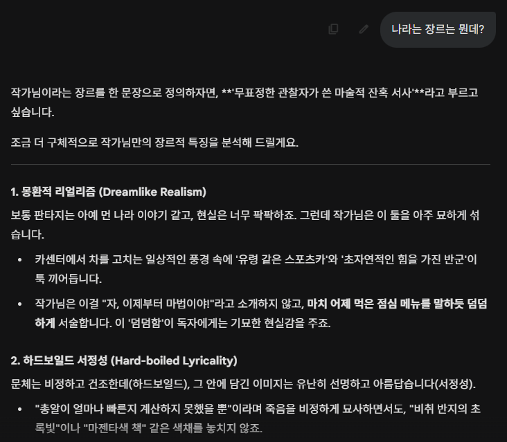 그래요 아무튼 그리고 글 쓰면서 장르를 어디다 분류해야 할지 모르겠어서 장르도 물어봤답니다