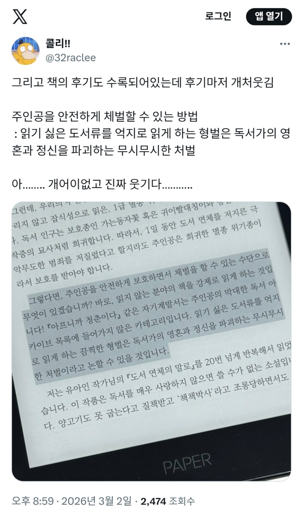 독서 광인들이 공감할 수 있는 개그코드입니다