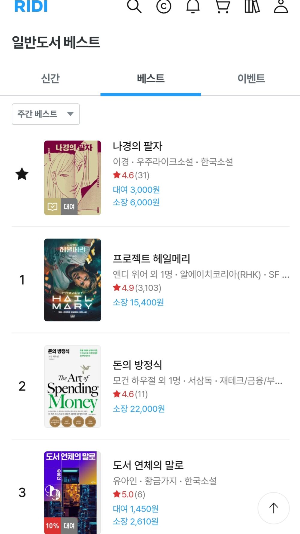 리디북스 주간베스트 3위 달성!