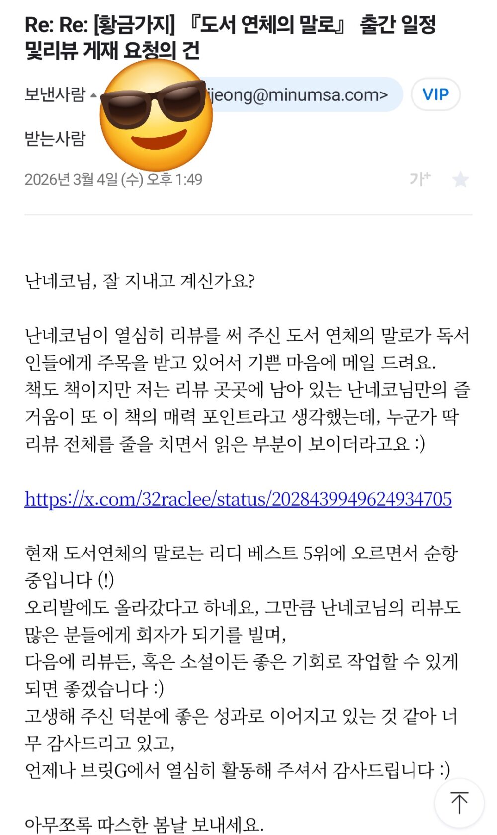 편집자님께서 보내준 링크에 들어가보니, 아래와 같은 후기글이 있었습니다.