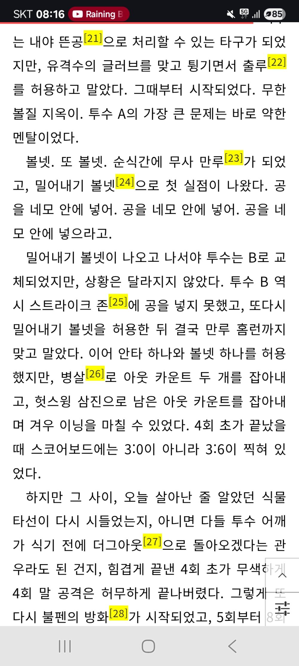 평소 야구를 즐겨보는 사람들 기준이면 아예 안 달아도 이해하는데 문제는 없습니다. 그렇지만 프로야구 관중 천만 시대라고 해도 야구 안 보는 사람이 많기 때문에…