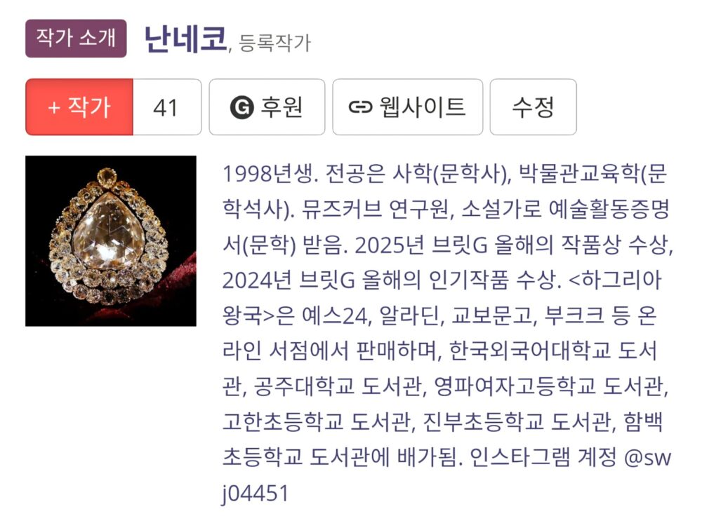 작가님들 소개글 보면 무슨무슨 상 받은 것도 기제하시길래 저도 브릿G에서 받은 상(!)들을 넣어봤습니다.