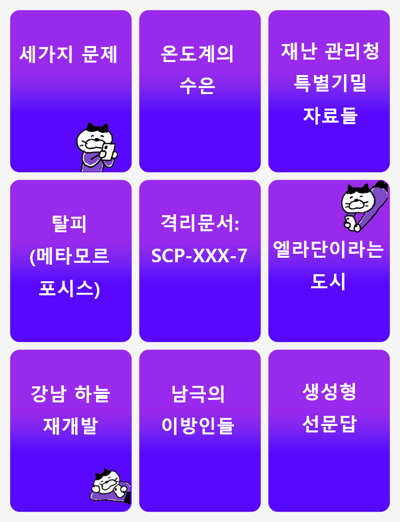 사실 탑스터 유행 자체는 인지하고 있었지만 참여는 안 했었는데 브릿G 작품 내라면 꼽아볼 수 있을 듯해 이렇게 꼽아봤습니다!