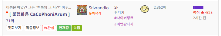 사이버펑크 장르에 여러 장르가 섞여 있지만 블레이드 러너 처럼 축축한 비가 늘 오는 분위기의 글 입니다.