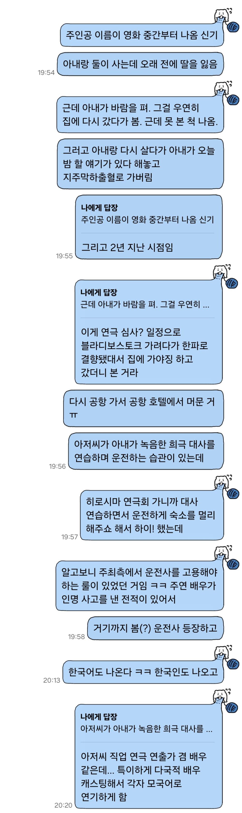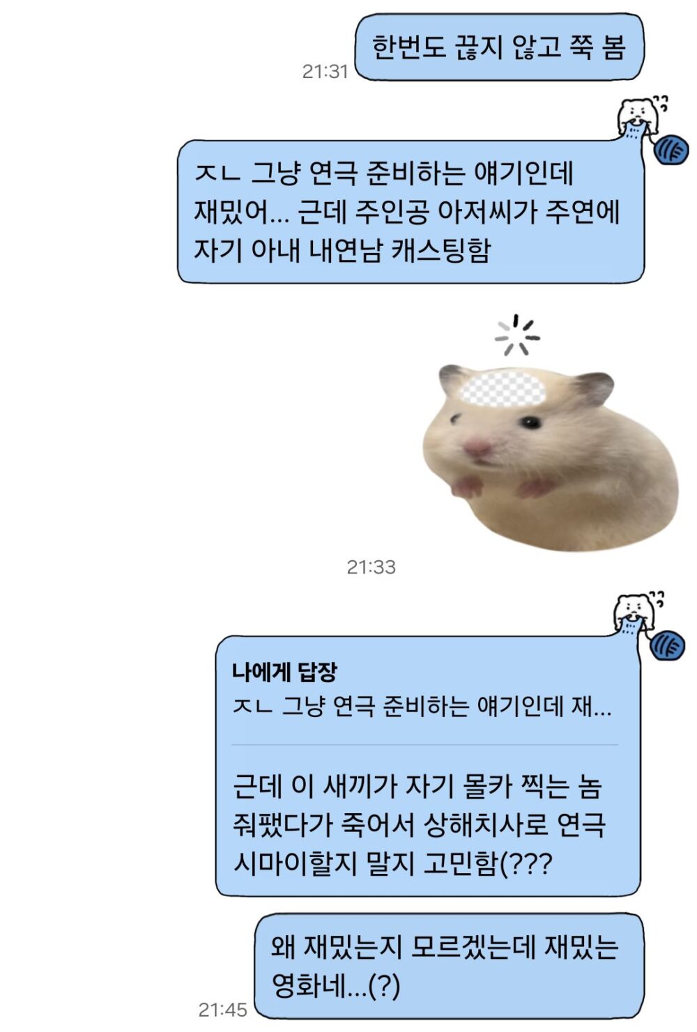보는 내내 황당해서 친구에게 보냈던 날것의 리뷰들… 네… 저런 내용 맞아요(?)