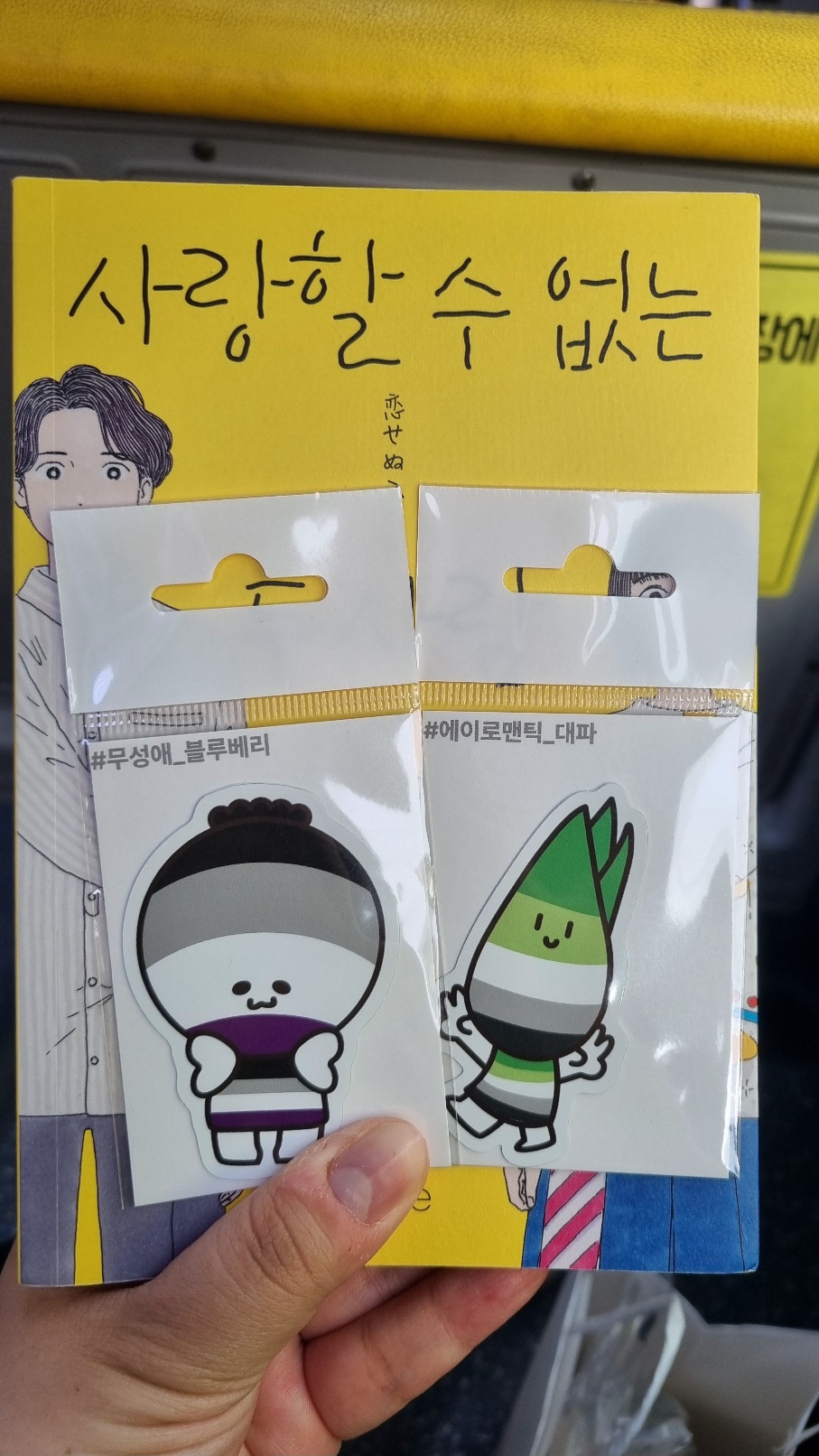 일코 굿즈가 많지 않은데 무성애 굿즈는 더 없어서, 이 책 속표지에 붙일 스티커 두 개랑 안경 닦이 정도를 샀습니다.