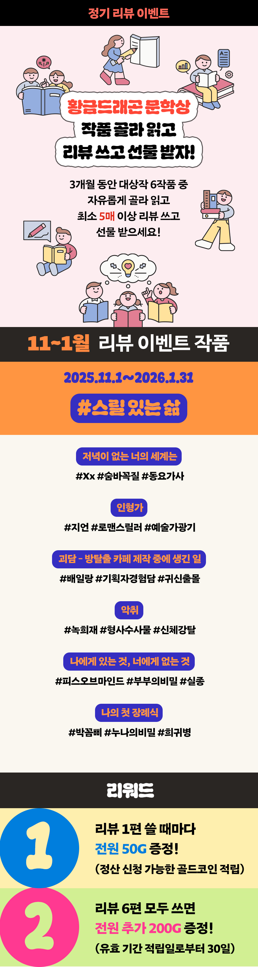 [11~1월] 황금드래곤 문학상 작품 읽고, 리뷰 쓰고 선물 받자!✍️