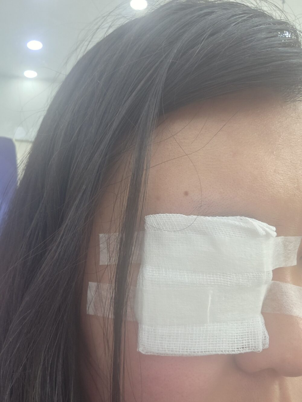 안과에서 눈 안쪽에 다래끼를 째는 시술을 받아서 이런 상태입니다.