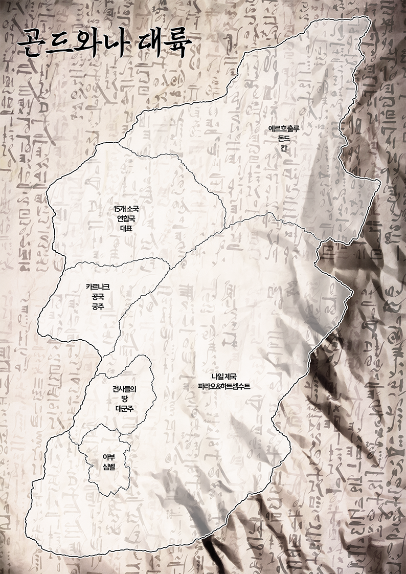 주로 등장하는 국가는 나일 제국, 전사들의 땅, 에르흐 출루 돈드, 카르나크 공국, 15개 소국 연합국 으로 총 다섯 국가입니다. 곤드와나 대륙에서 가장 강력한 권력을 잡은 국가는 나일 제국이며, 전사들의 땅은 모든 국가를 상대로 치외법권에 가까운 강력한 무력집단입니다. 에르흐 출루 돈드는 나일 제국과 오랜 동맹으로 맺어져 대륙 북부에서 패권을 떨치고 있으며, 카르나크 공국은 나일 제국에 소속된 사실상의 속국입니다. 15개 소국 연합국은 연합 내 모든 국가의 전력을 합할 경우 에르흐 출루 돈드를 위협할 수 있습니다.