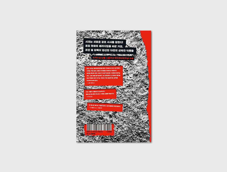 「겟 아웃」, 「어스」, 「놉」으로 공포 영화의 역사에 한 획을 그으며 국내에도 많은 팬을 확보한 감독 조던 필이 엮은 앤솔러지. ‘블랙 호러(Black Horror)’라는 장르를 대중에게 각인시킨 그가 엄선한 19편의 다채로운 작품이 수록되었으며, SF·판타지계의 명 편집자 존 조지프 애덤스가 작품의 선별과 편집을 함께했다. SF계의 최고상인 휴고상을 수상한 N. K. 제미신, 은네디 오코라포르, P. 젤리 클라크처럼 현재 장르 문학을 이끌고 있는 대표 작가뿐 아니라, 아직 국내에 번역된 적 없는 뛰어난 베테랑 작가들과 떠오르는 신예 작가들의 작품이 한데 실려 있다. ‘이야기’를 알아보는 데 탁월한 능력을 지닌 거장의 안목을 증명하듯, 『저 밖에서 비명 소리가』는 평단과 독자의 극찬 속에 “올해 최고일 뿐만 아니라, 시대를 초월할 앤솔러지.”(《가디언》)로 평가받으며 로커스상, 브램 스토커상, 영국환상문학상을 석권했다.